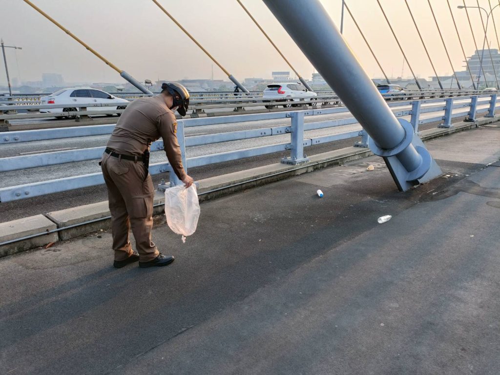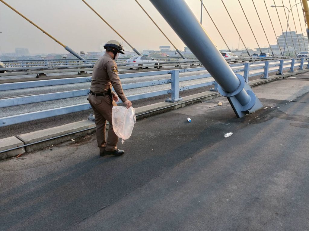 เดินเก็บขยะบริเวณทางเดินสะพานพระราม 8 เพื่อความสะอาดเรียบร้อย