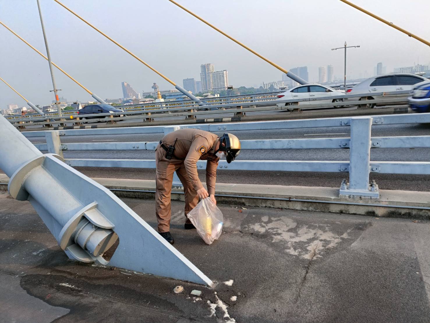เดินเก็บขยะบริเวณทางเดินสะพานพระราม 8 เพื่อความสะอาดเรียบร้อย