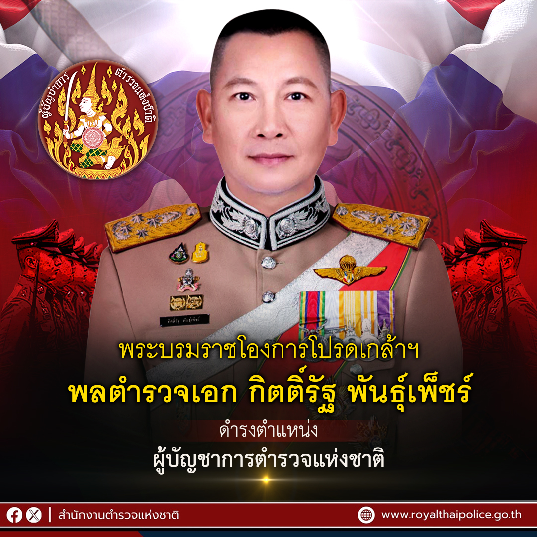 มีพระบรมราชโองการโปรดเกล้าโปรดกระหม่อมให้ พลตำรวจเอก กิตติ์รัฐ พันธุ์เพ็ชร์ พ้นจากตำแหน่ง รองผู้บัญชาการตำรวจแห่งชาติ และแต่งตั้งให้ดำรงตำแหน่ง ผู้บัญชาการตำรวจแห่งชาติ สำนักงานตำรวจแห่งชาติ ตั้งแต่วันที่ 9 ตุลาคม 2567