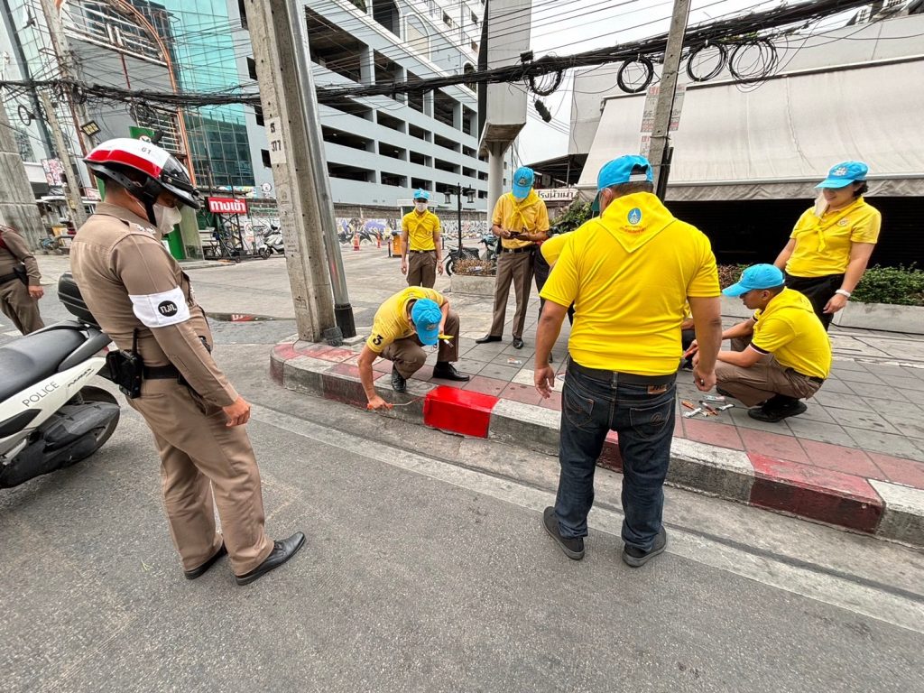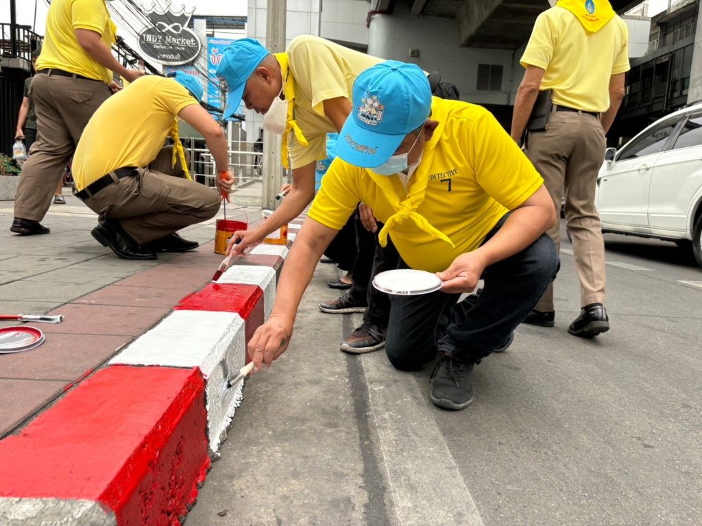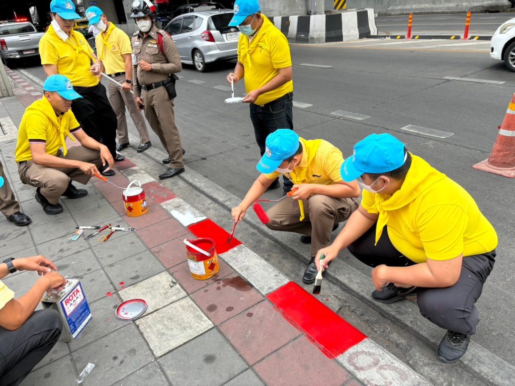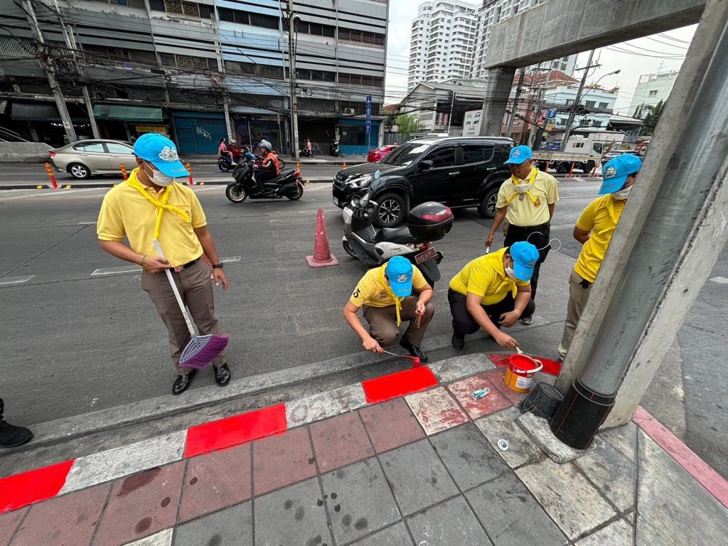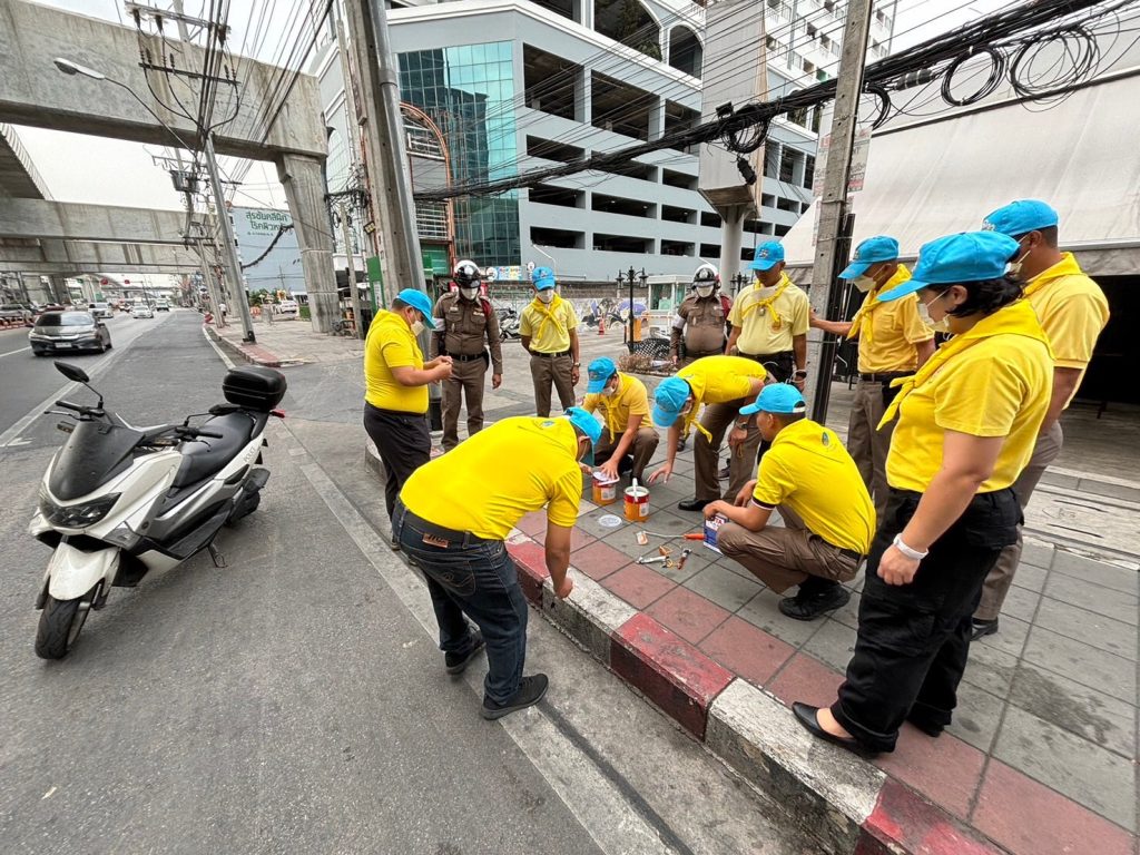 ทำจิตอาสา พัฒนา ทาสีขอบฟุตปาธขาว-แดง หน้าตลาดอินดี้ปิ่นเกล้า