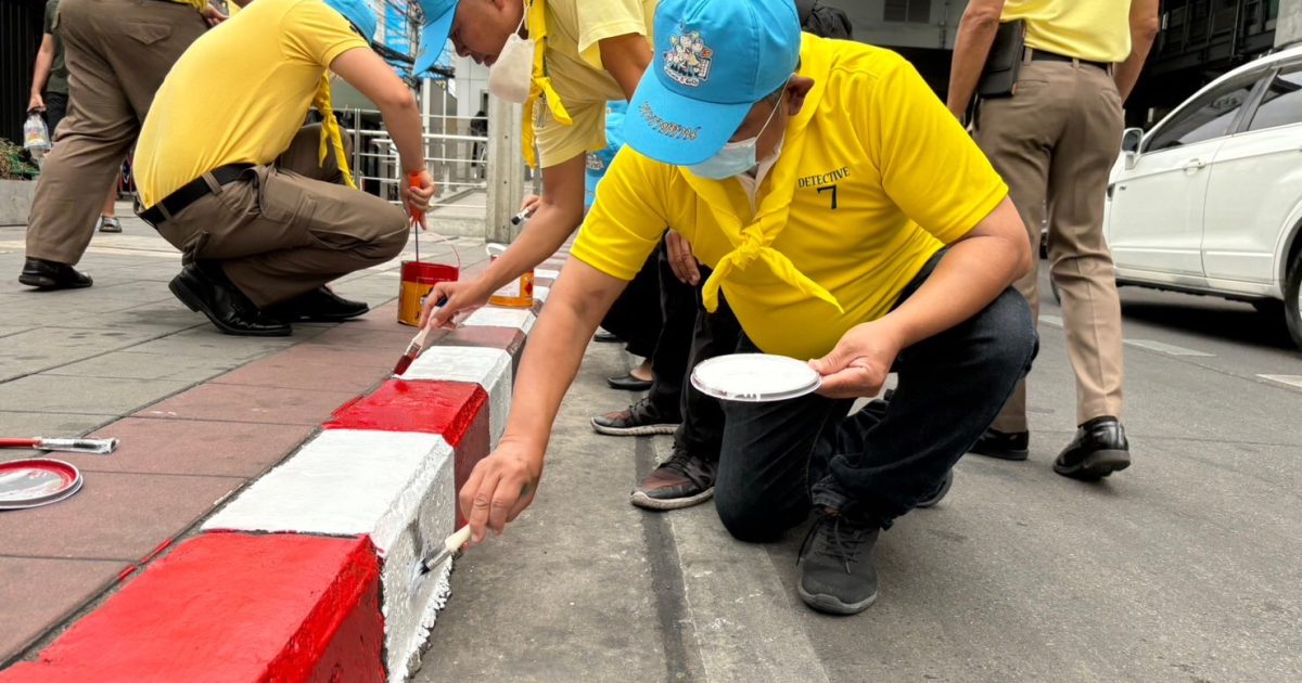 ทำจิตอาสา พัฒนา ทาสีขอบฟุตปาธขาว-แดง หน้าตลาดอินดี้ปิ่นเกล้า