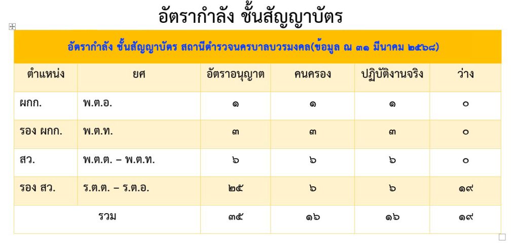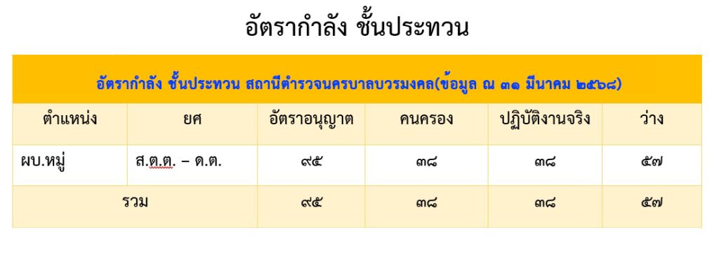 อัตรากำลังพล สถานีตำรวจนครบาลบวรมงคล