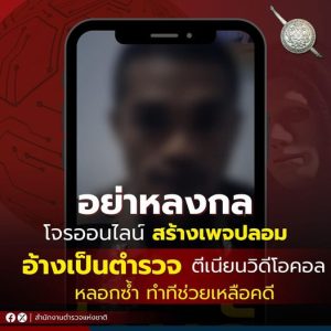 ตำรวจเตือนภัย อย่างหลงกลมิจฉาชีพออนไลน์สร้างเพจเฟซบุ๊กปลอม อ้างเป็นตำรวจหลอกว่าช่วยเหลือคดีออนไลน์.ส