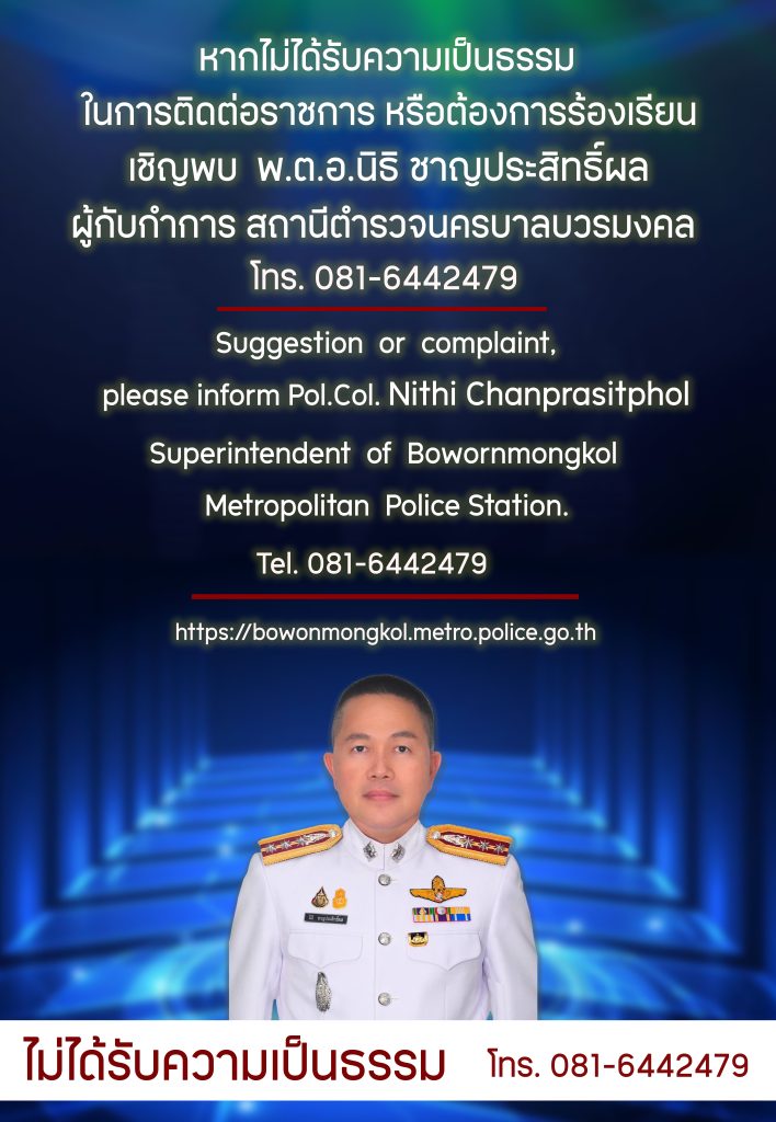 สถานีตำรวจนครบาลบวรมงคล ผ่าน Google forms คลิ๊กที่ภาพ