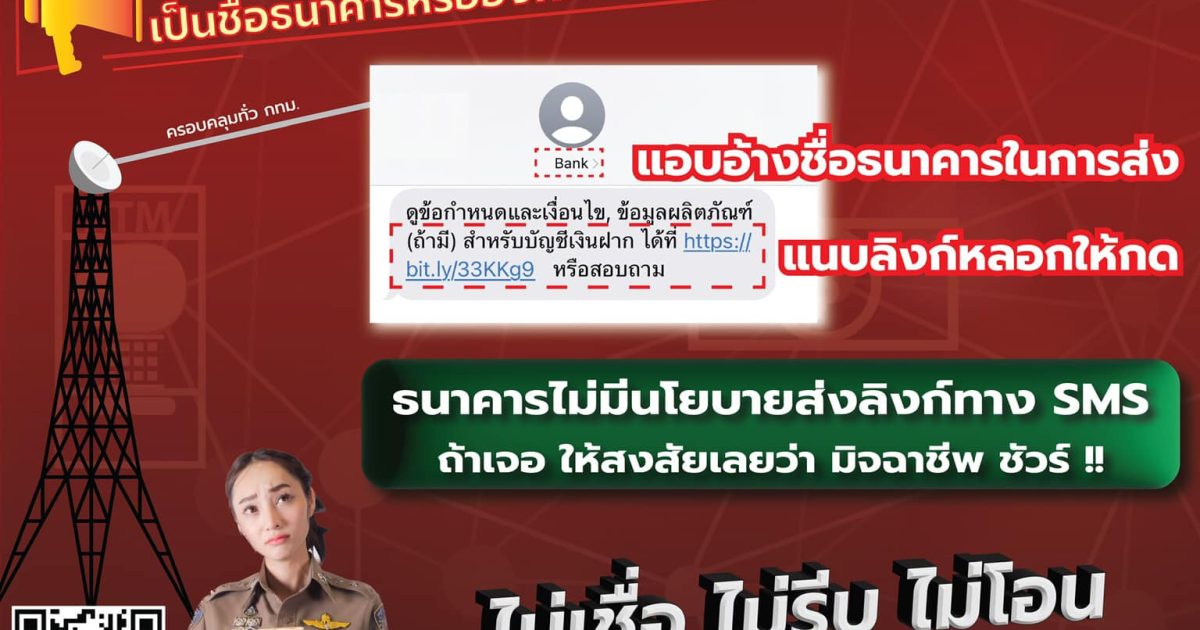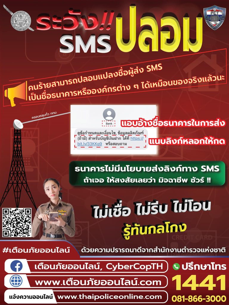 ระวัง SMS ปลอม 13 กันยายน 2566 โดย risedin / ข่าวประชาสัมพันธ์,งานสอบสวน Post Views: 103 FacebookFacebookXXLINELine