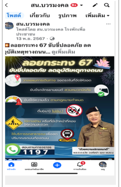 เฟสบุ๊ค สน.บวรมงคล โพสต์ประชาสัมพันธ์ “ การแก้ไขปัญหาการจราจร ”