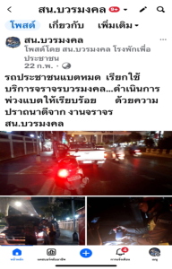 เฟสบุ๊ค สน.บวรมงคล โพสต์ประชาสัมพันธ์ “ 22 พ.ย.67 รถแบตหมด เรียกใช้บริการจราจรบวรมงคล ดำเนินการช่วยเหลือกลับที่พักเรียบร้อย