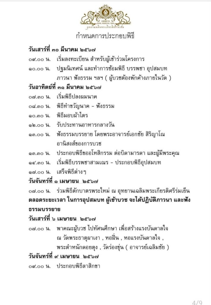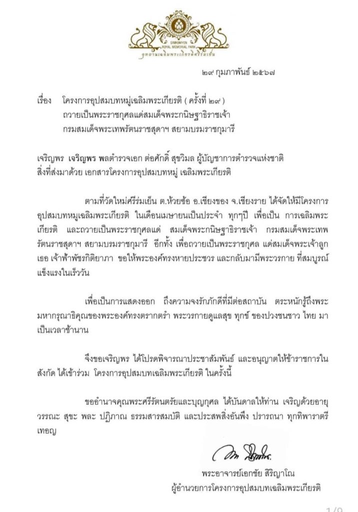 สำนักงานตำรวจแห่งชาติขอเชิญข้าราชการตำรวจพุทธศาสนิกชนชายไทย เข้าร่วมโครงการอุปสมบทหมู่เฉลิมพระเกียรติปฏิบัติธรรมภาวนา เพื่อถวายเป็นพระราชกุศลแด่สมเด็จพระกนิษฐาธิราชเจ้า กรมสมเด็จพระเทพรัตนราชสุดาฯ สยามบรมราชกุมารี เนื่องในเดือนพระราชสมภพ