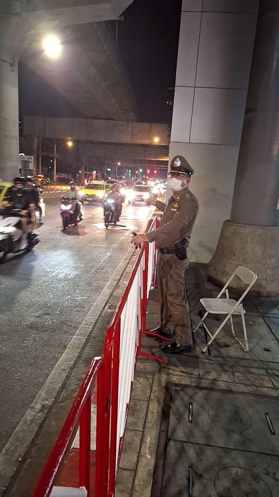 พร้อมกำลังเจ้าหน้าที่ตำรวจฝ่ายจราจร สน.บวรมงคล ร่วมกันติดตั้งแผงเหล็กป้องกันรถจอดกีดขวางหน้าตลาดอินดี้ปิ่นเกล้า และอำนวยความสะดวกจราจร ถนนจรัญสนิทวงศ์หน้าตลาดอินดี้ปิ่นเกล้า